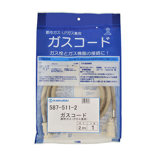 カクダイ ガスコード(都市ガス・LPガス兼用・2m) 587-511-2